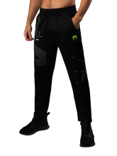 Спортивные брюки черного цвета из коллекции М1 подойдут для ценителей и занимающихся спортивными боевыми единоборствами. Модель выполнена из мягкого хлопкового трикотажа и декорирована монохромным принтом спереди и сзади, широкий пояс дополнен шнурком, застегиваются на молнию и кнопку, два кармана по бокам и один сзади, трикотажные манжеты.
